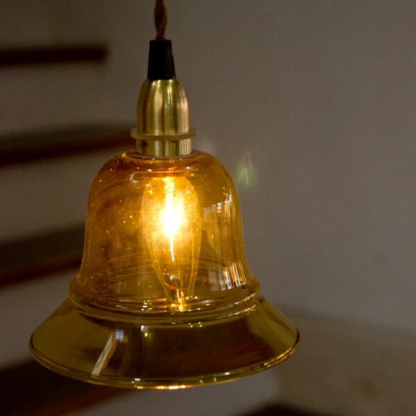 レトロ感満載のアンバーガラスのランプシェード。